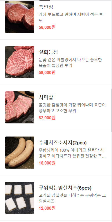 이외 목살, 삽겹살도 있고 한우도 있습니다. 메뉴판을 보니 확실히 이베리코 전문점인것 같습니다.