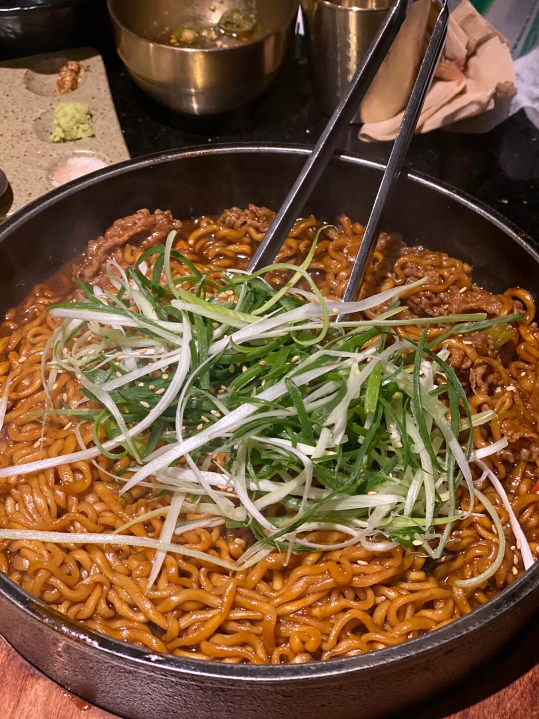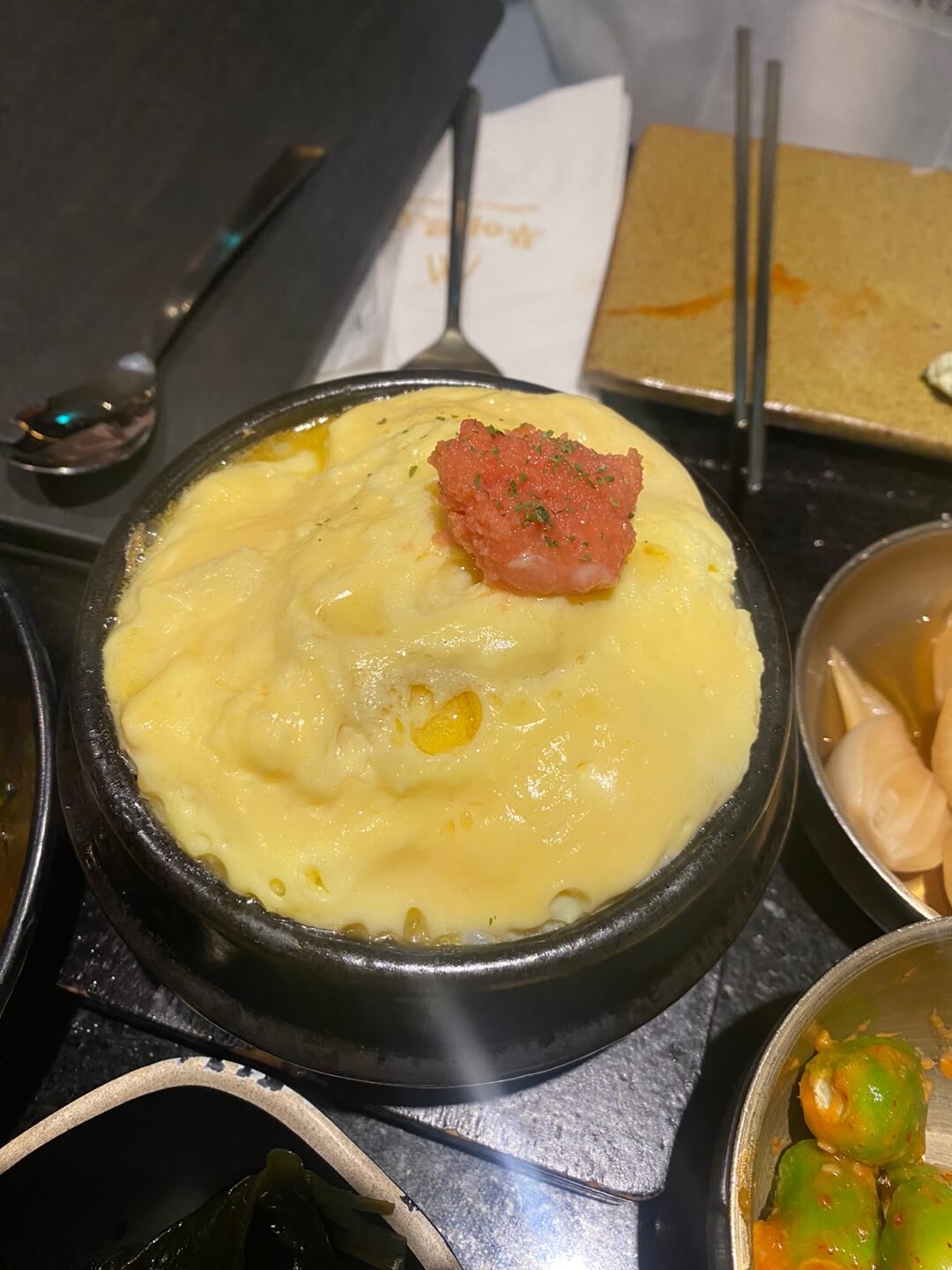 아래는 사이드 메뉴로 시킨 명란 계란찜과 한우 매콤 짜파게티입니다.