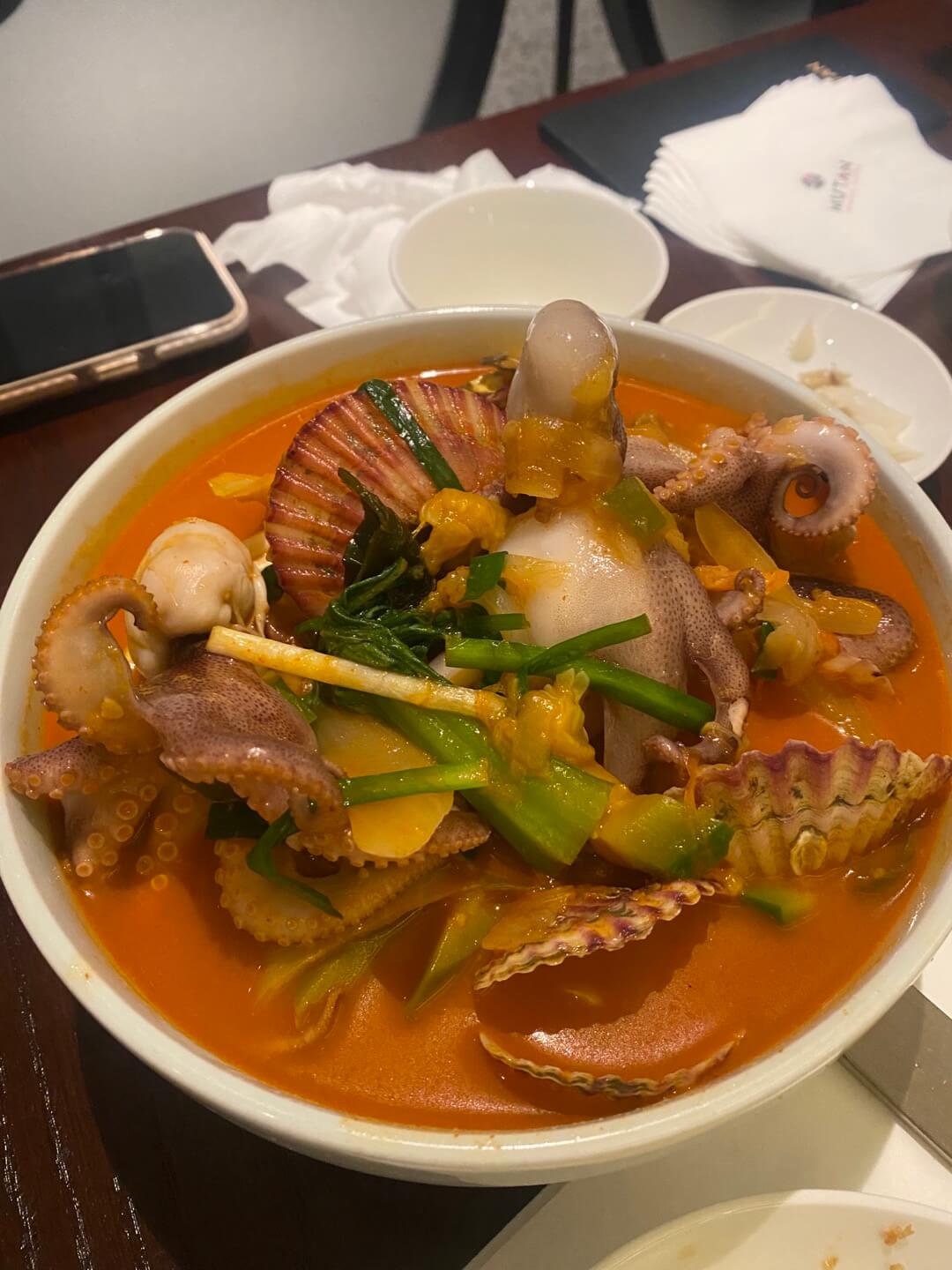 두번째 메뉴는 고흥 쭈꾸미 특 짬뽕입니다. 짬뽕 한그릇 38,000원 입니다~ 사진으로봐도 쭈구미+가리비 가득한 거 보이시죠? 특유의 해산물 진한 맛이 일품이고 비쥬얼이 아주 훌륭한 짬뽕입니다. 양이 꽤 많아서 다같이 쉐어해서 먹기 좋은 메뉴입니다.