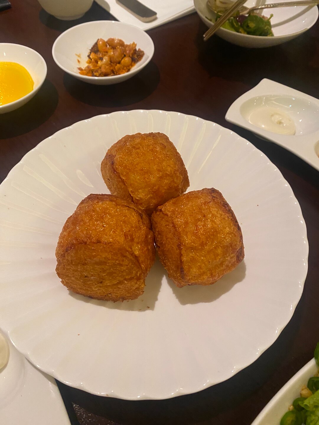 마카롱이 아닌 뚱카롱 비쥬얼인데요~ 새우살이 정말 가득한 멘보샤로 일반 멘보샤 대비 새우살이 2배는 더 되 보이는것 같네요~ 3가지 소스와 함께 제공되어 담백하게 잘 먹었습니다.