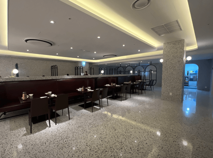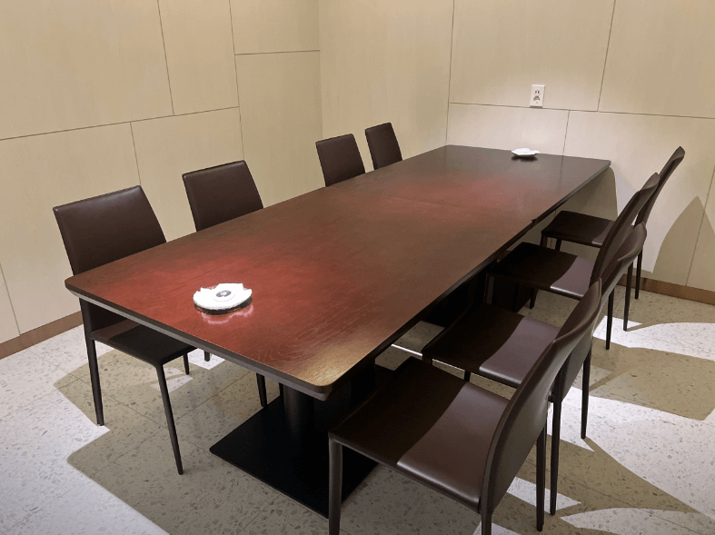내부 인테리어도 대리석에 테이블이 아래 사진처럼 배치되어 있습니다. 프라이빗한 공간에서 식사를 하기위해 룸도 몇개 준비되어 있어요~ 대신 인원수가 좀 많아야 이용 가능할 것 같네요-