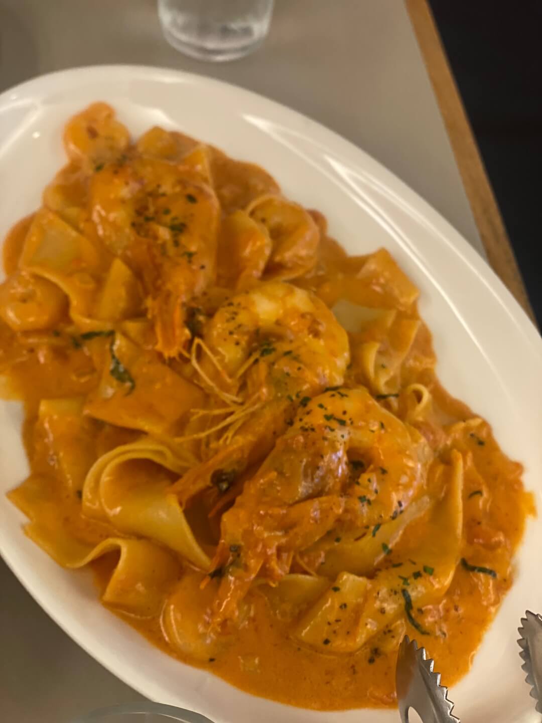 첫번째 주문한 음식은 새우 로제 파스타(Pappardelle al Gambero)입니다!