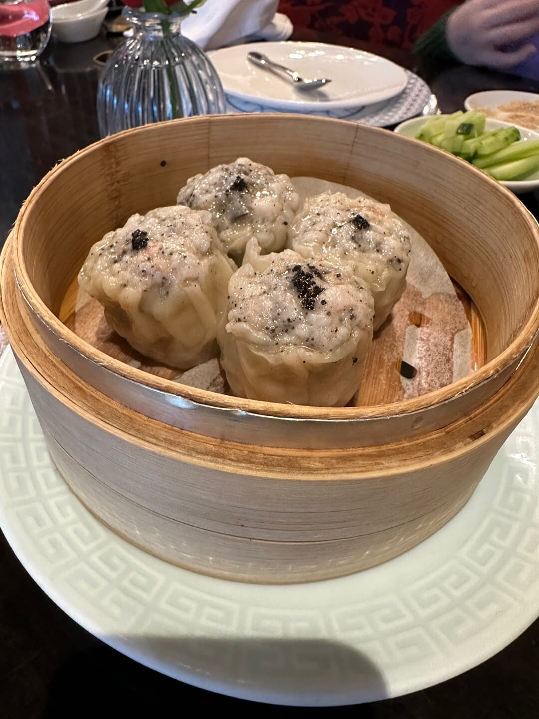 아래 사진은 대표 딤섬 메뉴인 메추리알 트러플 샤오마이(메추리알, 새우, 돼지고기, 블랙 트러플) 인데요~
