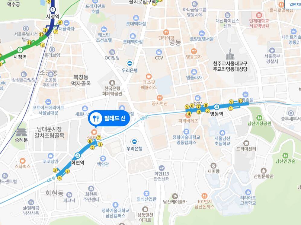 참고로 미쉐린 가이드 서울 2023에 등재되어 있는 프리미엄 중식당입니다. 저는 차를 가져가서 호텔 주차장에 주차했는데요~ 지하철 이용시 4호선 회현역 7번 출구로 나가시면 금방이네요.