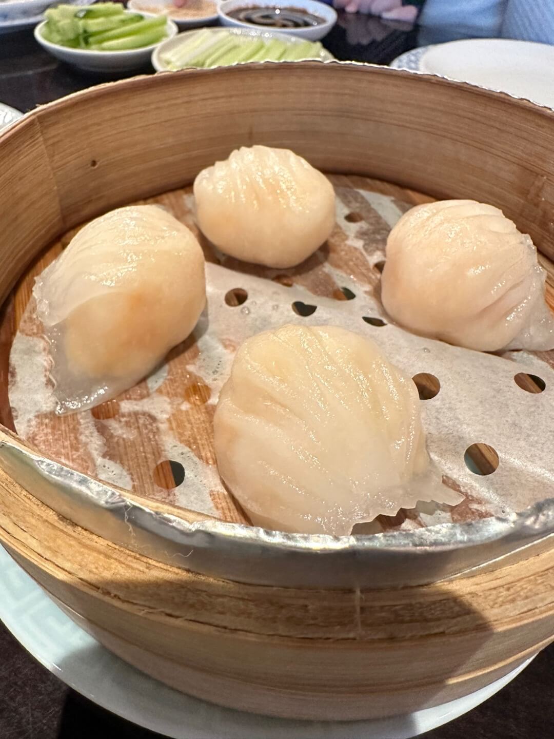 아래 사진은 하가우 (돼지고기와 왕새우)이고요... 한입 베어물때 돼지고기의 육즙과 함께 새우 본연의 해산물 향을 느낄 수 있어 좋았습니다.