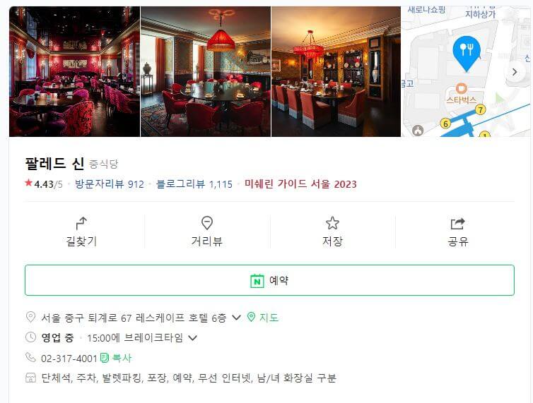 팔레드 신(Palais De Chine)은 남대문 시장 바로 옆에 위치한 레스케이프 호텔 6층에 위치해 있습니다. 사실 저는 레스케이프 호텔보다 팔레드 신은 먼저 알게되었는데요. 레스케이프 호텔도 프렌치 부티끄 호텔로 신세계에서 운영하는 꽤 유명한 호텔이더라고요~